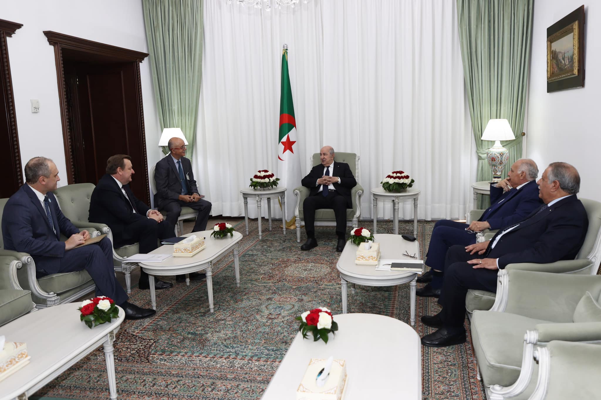 في منشور على صفحة رئاسة الجمهورية بشبكة (فايسبوك)، أفيد أنّ مراسم الاستقبال حضرها مدير ديوان رئاسة الجمهورية، بوعلام بوعلام، ووزير الشؤون الخارجية والجالية الوطنية بالخارج، أحمد عطاف.