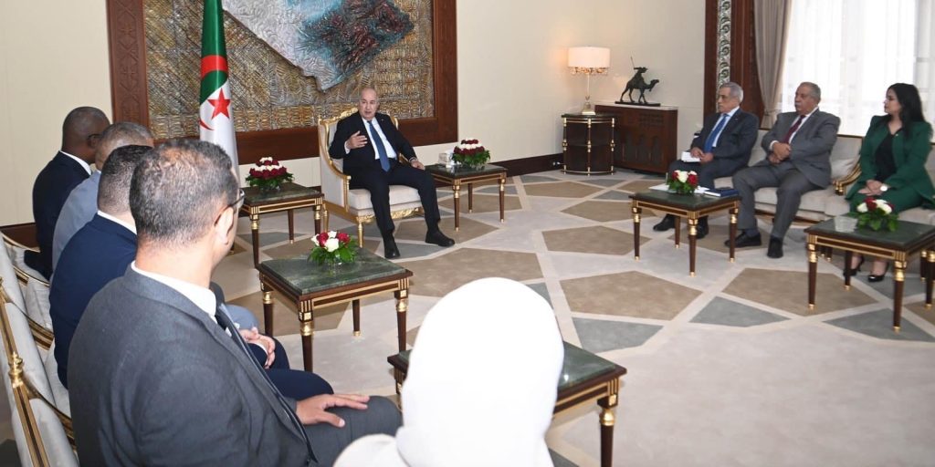 استقبل رئيس الجمهورية، السيد عبد المجيد تبون، الثلاثاء، رئيس المجلس الأعلى للشباب، السيد مصطفى حيداوي وأعضاء مكتبه، حسب ما أورده بيان لرئاسة الجمهورية.