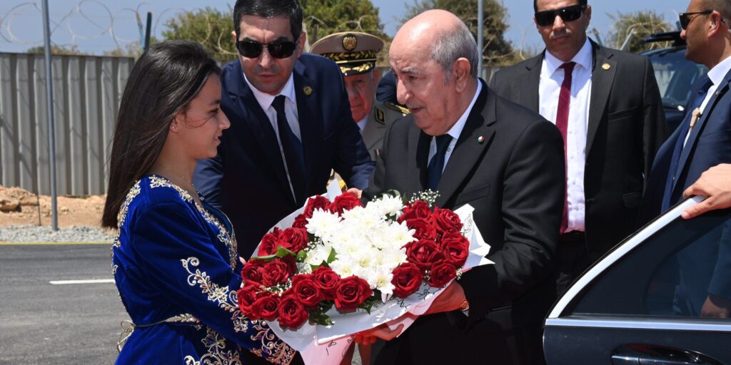 ولدى وصوله, استقبل رئيس الجمهورية الذي كان مرفوقا برئيس أركان الجيش الوطني الشعبي, الفريق أول السعيد شنقريحة, من قبل السلطات المحلية المدنية والعسكرية, حيث استمع الى النشيد الوطني واستعرض تشكيلات من مختلف قوات الجيش الوطني الشعبي أدت له التحية الشرفية.