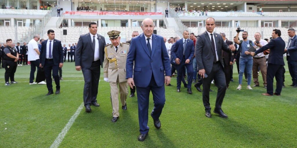 ولدى وصوله, استقبل رئيس الجمهورية الذي كان مرفوقا برئيس أركان الجيش الوطني الشعبي, الفريق أول السعيد شنقريحة, من قبل السلطات المحلية المدنية والعسكرية, حيث استمع الى النشيد الوطني واستعرض تشكيلات من مختلف قوات الجيش الوطني الشعبي أدت له التحية الشرفية.