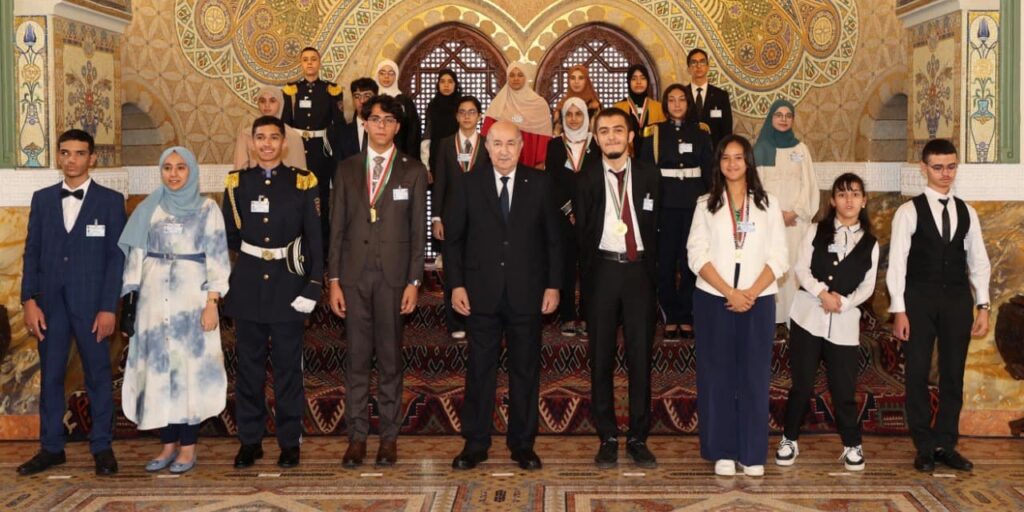وجرى حفل التكريم بحضور كبار المسؤولين في الدولة وأعضاء من الحكومة، إلى جانب عائلات المكرمين. ففي شهادة البكالوريا، كرم رئيس الجمهورية كلا من المتفوق الأول وطنيا، محمد الأمين مقران، من ثانوية بلكبير عبد القادر بولاية تيبازة الذي تحصل على معدل 62.19 في شعبة الرياضيات، والمتفوقة الثانية، راحب ماريا إيناس، من ثانوية العقيد لطفي بولاية وهران التي تحصلت على معدل 54.19 في شعبة العلوم التجريبية، والمتفوقة الثالثة، أولم وصال، من ثانوية الإخوة عشي بولاية خنشلة التي تحصلت على معدل 52.19 في شعبة العلوم التجريبية. وكرم رئيس الجمهورية أيضا المتفوق، قلوش جديد رياض، من مدرسة أشبال الأمة “الشهيد حمداني” المدعو “سي عثمان” بولاية وهران، والذي تحصل على معدل 10.19 في شعبة الرياضيات. وفي فئة ذوي الهمم من حاملي شهادة البكالوريا، كرم رئيس الجمهورية كلا من التلميذة، هاجر شرقي، المتحصلة على معدل 87.17 في شعبة العلوم التجريبية من ولاية باتنة، التلميذة آلاء لشلح المتحصلة على معدل 69.17 من ولاية الوادي والتلميذ شمس الدين عريبي المتحصل على معدل 63.16 شعبة آداب وفلسفة من ولاية المدية. وفي شهادة التعليم المتوسط، قام رئيس الجمهورية بتكريم المتفوقين الأوائل وطنيا، تتقدمهم التلميذة، زغرار لينا، من متوسطة محمد عزوز بولاية الأغواط المتحصلة على معدل 94.19 والتلميذة خيتوس هديل، من متوسطة داودي صالح برأس العيون بولاية باتنة بمعدل 92.19 والتلميذة شهد نور الهدى زاوي، من متوسطة العقيد الحواس بولاية المسيلة بمعدل 87.19. وبخصوص فئة ذوي الهمم المتفوقين في شهادة التعليم المتوسط، كرم رئيس الجمهورية كلا من التلميذة، نورة دعاء تهامي، من ولاية سطيف المتحصلة على معدل 08.18 والتلميذ إبراهيم بن أحمد، الحائز على معدل 89.17 من ولاية ميلة، والتلميذ محمد عامر، المتحصل على معدل 54.17 من مديرية التربية وسط بالجزائر العاصمة. كما خص التلميذ، دراش شمس الدين عبد العالي، الذي أهدى الجزائر، لأول مرة، ميدالية ذهبية في أولمبياد الرياضيات التي جرت في بريطانيا وتحصل على شهادة البكالوريا بامتياز، بتكريم خاص من قبل رئيس الجمهورية. وبدروه، قام بطل الجزائر في الرياضيات، بتقليد رئيس الجمهورية الميدالية الذهبية.