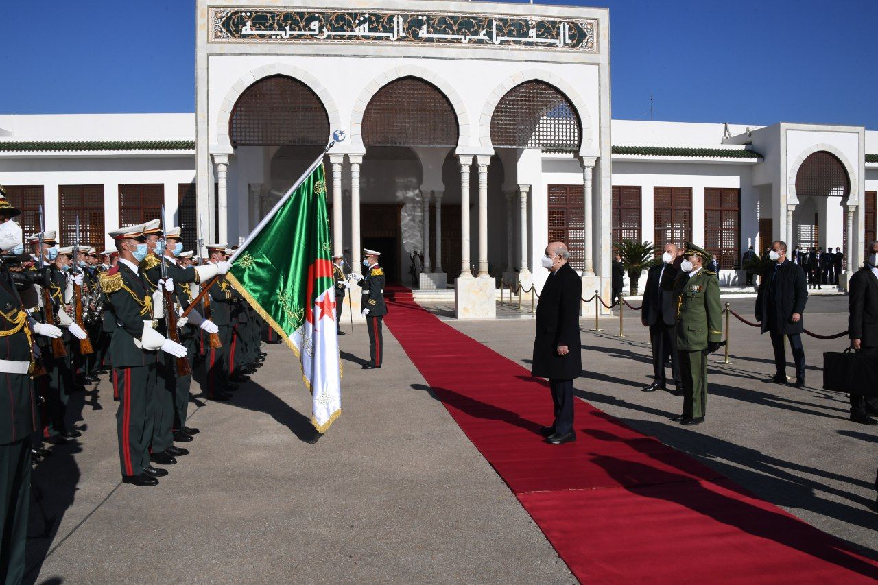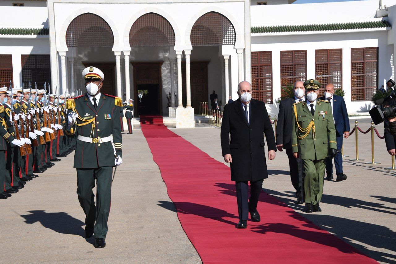 وكان في توديع السيّد الرئيس، الوزير الأول وزير المالية، السيد أيمن بن عبد الرحمان، ورئيس أركان الجيش الوطني الشعبي، السيد الفريق السعيد شنقريحة، ومدير ديوان رئاسة الجمهورية، السيد عبد العزيز خلف.