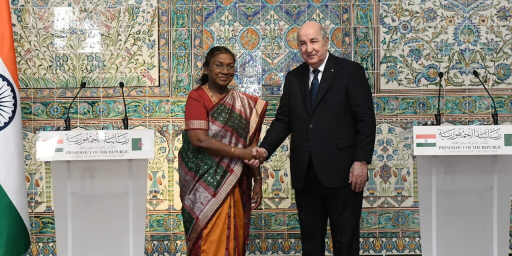 وقال رئيس الجمهورية في تصريح صحفي مشترك مع رئيسة جمهورية الهند، السيدة دروبادي مورمو، عقب المحادثات التي جمعت بينهما بمقر رئاسة الجمهورية: “أرحب مجددا برئيسة دولة الهند الصديقة التي تقوم بزيارة دولة الى الجزائر ولأول مرة تستقبل الجزائر رئيسا للهند حيث سبق وأن استقبلنا الوزراء الأولين”، مبرزا أنه تم خلال هذه الزيارة إجراء محادثات مكثفة تناولنا خلالها التعاون الثنائي وآفاق تطويره من جهة وتطرقنا من جهة أخرى الى قضايا إقليمية ودولية راهنة. وأوضح بخصوص العلاقات الثنائية، أنه تم الاتفاق على ترقية مستوى التعاون الاقتصادي وتشجيع الاستثمار والتبادل التجاري وسيتم في أقرب وقت التحضير لعقد دورة لكل من اللجنة المشتركة للتعاون وآلية التشاور السياسي بما يخدم جهود دعم العلاقات وتعميق الشراكة الثنائية لاسيما من خلال لقاء رجال الأعمال وتعزيز أطر التعاون بإثراء الاطار القانوني والتنسيق والتشاور وأضاف رئيس الجمهورية أنه كان له مع رئيسة جمهورية الهند حديث مطول ومعمق أملته الظروف الخاصة والاستثنائية الراهنة على المستويين الاقليمي والدولي، كما تم التطرق إلى عدة ملفات منها ملف الشرق الأوسط بكل أبعاده وتداعياته، لا سيما الاعتداء على قطاع غزة وجنوب لبنان وما انجر عن ذلك من تبعات انسانية كارثية وانعكاسات خطيرة على الأمن والسلم في منطقة الشرق الأوسط والعالم. وبهذا الخصوص، أشار رئيس الجمهورية إلى أنه اتفق مع رئيسة الهند على تكثيف التنسيق والتشاور وتجديد التأكيد على حق الشعب الفلسطيني في اقامة دولته المستقلة وفيما يتعلق بالوضع في أوكرانيا –يقول رئيس الجمهورية– تم التأكيد على أهمية الاحتكام إلى القانون الدولي والتمسك بأهداف ومبادئ وميثاق الأمم المتحدة. من جهة أخرى، أبرز رئيس الجمهورية أنه تم الاتفاق مع نظيرته الهندية على متابعة مخرجات مجلس الأمن فيما يخص قضية الصحراء الغربية مضيفا بالقول: فيما يخص مستجدات الساحل على ضوء الاوضاع المقلقة السائدة فيها، أبدينا حرصنا على مواصلة دعم جهود السلم والامن والتنمية في المنطقة لمساعدة الدول المعنية على تجاوز التحديات السياسية والأمنية والبيئية التي تواجهها، وأكد رئيس الجمهورية في هذا السياق، أنه في كل من هذه الملفات سجلنا تطابقا في وجهات النظر واتفقنا على مواصلة الجهود المشتركة للمساهمة في استتباب الأمن والاستقرار سواء في هذه المنطقة أو في مناطق العالم التي تشهد أزمات تشكل تهديدا للسلم والأمن الدوليين. وأبدى رئيس الجمهورية بذات المناسبة، سعادته بلقاء رئيسة جمهورية الهند واستذكار التاريخ المشترك ومساندة دولة الهند للجزائر في حصولها على عضوية حركة عدم الانحياز خلال مؤتمر باندونغ سنة 1955 منوها بدعم الهند للثورة التحريرية عبر فتح مكتب للحكومة المؤقتة للجمهورية الجزائرية بنيودلهي وإقامة علاقات دبلوماسية قبل إعلان استقلال الجزائر في 5 جويلية 1962. وخلص رئيس الجمهورية إلى التأكيد بأن البلدين سيسترجعان تشاورهما مثلما كان عليه الأمر سابقا باعتبارهما دولتين فاعلتين في حركة عدم الانحياز.