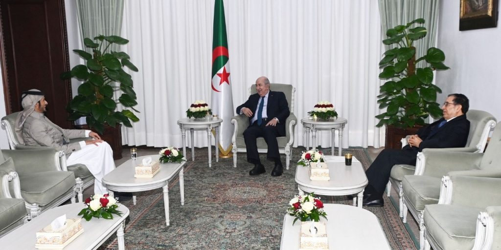 استقبل رئيس الجمهورية، السيد عبد المجيد تبون، الثلاثاء، سمو الشيخ جاسم بن حمد آل ثاني، الممثل الشخصي لصاحب السمو أمير دولة قطر، الشيخ تميم بن حمد آل ثاني حسب ما أفاد به بيان لرئاسة الجمهورية.