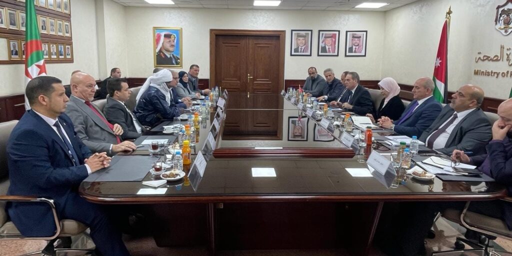 وبحسب بيان المجلس الشعبي الوطني، فقد قدم وزير الصحة شروحات وافية عن واقع القطاع وما يشهده من تطور، لا سيما فيما يخص معالجة الكثير من الأمراض المستعصية. من جهته، تطرق السيد بوغالي، إلى واقع العلاقات المتميزة بين البلدين وحث على مواصلة مسار تطويرها والرقي بها بما يخدم المصالح المشتركة. في ذات السياق، استعرض رئيس المجلس الإصلاحات التي تشهدها الجزائر خاصة بعد القرارات التي اتخذها السيد رئيس الجمهورية من أجل تطوير القطاع، موضحا أن الجزائر حققت، تحت قيادته، إنجازاتٍ عديدة، تؤكد التزام الدولة بضمان الحق في حماية الصحة العمومية، والوقاية من الأمراض والأوبئة، والحفاظ على النظام الوطني للرعاية الصحية الـمجانية وترقيته. وبالمقابل، طرح رئيس المجلس بعض الانشغالات على غرار تفعيل الاتفاقية المبرمة بين البلدين سنة 2006 وكذا عديد اتفاقيات التعاون الثنائي للاستفادة المتبادلة من الخبرات والخدمات والتعاون في مجال بنوك الدم ومع معهد باستور وإسهام أطباء أردنيين في مشروع “الطبيب الزائر”. من جهته، أوضح الوزير، أن زيارة كانت مبرمجة للتوقيع على الاتفاقية بعد أن تم ضبط كل المسائل المتعلقة بها ولكنها أجّلت، وأضاف بأنه سيعمل بالتنسيق مع الجانب الجزائري على تجسيد هذه الزيارة في أقرب وقت ممكن.