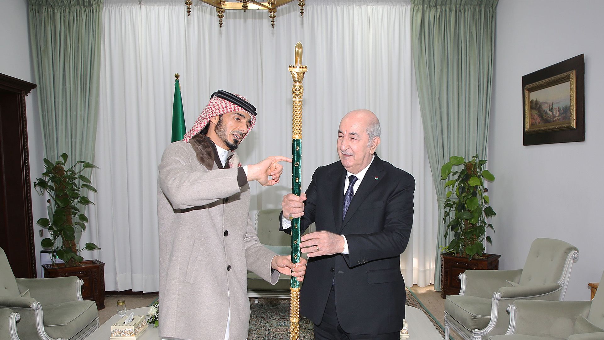 استقبل رئيس الجمهورية، السيد عبد المجيد تبون، الإثنين، الشيخ جاسم بن حمد آل ثاني، الممثل الشخصي لأمير دولة قطر، الذي سلمه سارية علم كأس العرب لكرة القدم التي توج بها مؤخرا المنتخب الوطني الجزائري لكرة القدم.