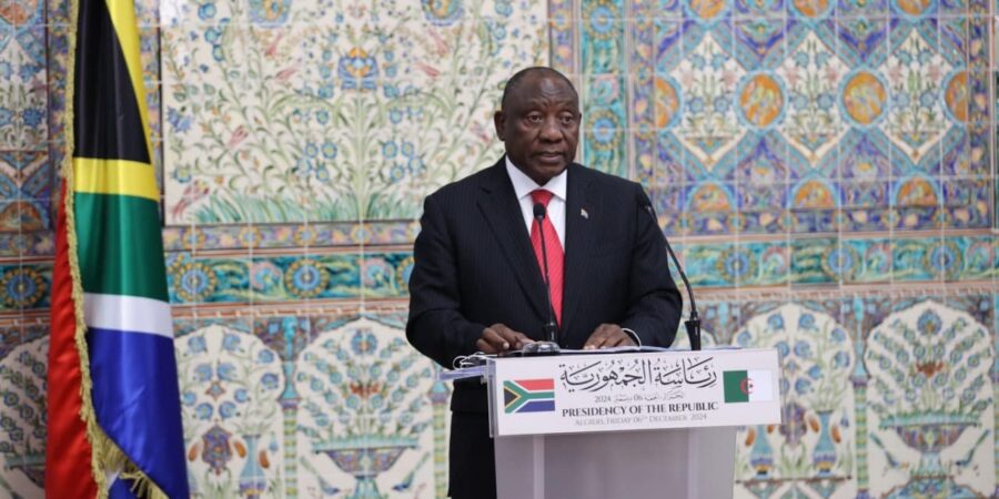 وفي تصريح صحفي مشترك مع رئيس الجمهورية، السيد عبد المجيد تبون، عقب المحادثات التي جمعتهما بمقر رئاسة الجمهورية، قال الرئيس سيريل رامافوزا: “لدينا إيمان عميق بأن التعاون بين جنوب إفريقيا والجزائر سيعزز التعاون الإفريقي، وأوضح بهذا الخصوص قائلا: “نحن سعداء جدا بهذا التعاون بين بلدينا ونسعى لرفع المستوى التجاري الذي سيتعزز بإطلاق منطقه التبادل الحر والتجارة بين البلدين”، مشيرا إلى أن شعب جنوب إفريقيا يشكر الجزائر على وقوفها معه في كفاحه واحتضانها للزعيم نيلسون مانديلا، وأعرب في هذا السياق عن أمله في تعزيز العلاقات التاريخية بين البلدين معبرا عن شكره لرئيس الجمهورية وللجزائر على حفاوة الاستقبال الذي خص به. وعلى الصعيد الدولي، سجل رئيس جمهورية جنوب إفريقيا عدم احترام للقانون الدولي، حيث ذكر في هذا السياق بالدعوى التي رفعتها بلاده ضد الكيان الصهيوني وجرائم الحرب التي يرتكبها في غزة، مؤكدا أنه تلقى دعما كبيرا من عديد. وخلص إلى القول: “نطالب باحترام القانون الدولي في فلسطين ونحن متضامنون مع كل الشعوب المظلومة”.