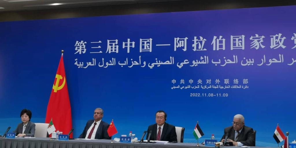 الصيني وأحزاب الدول العربية تحت عنوان “العمل يدا بيد لبناء مجتمع المستقبل المشترك للصين والدول العربية في العصر الجديد: مسؤولية الأحزاب السياسية”, والتي حضرها ممثلون عن مكونات سياسية من العالم العربي.