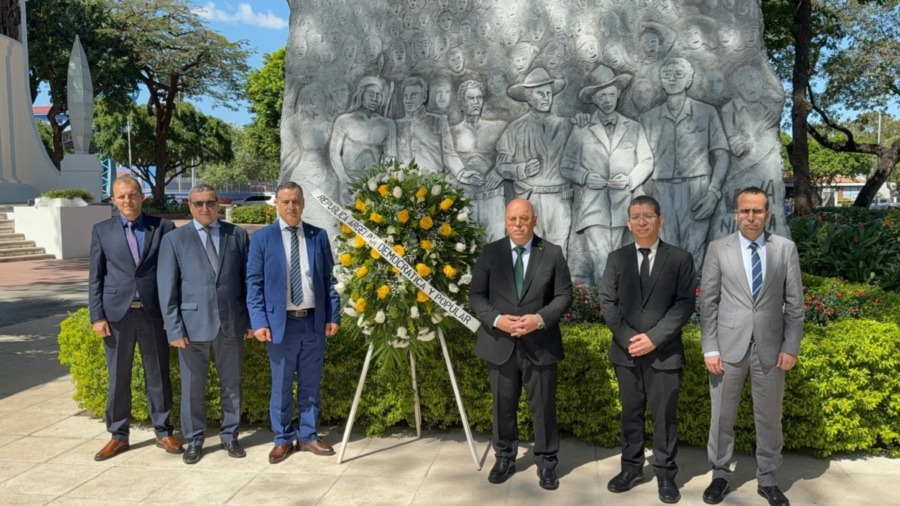 وقف وزير المجاهدين وذوي الحقوق العيد ربيقة الإثنين عند المعلم التذكاري “معلم أبطال الثورة” بالعاصمة ماناغوا أين وضع إكليلا من الزهور على أرواح أبطال جمهورية نيكاراغوا.