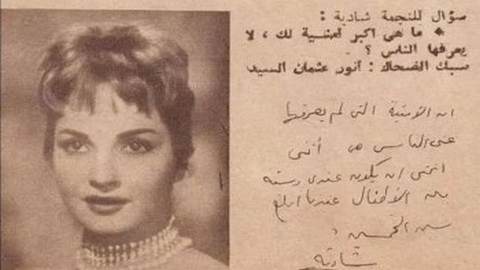 تداول رواد مواقع التواصل الاجتماعي صورة لرسالة كتبتها الفنانة المصرية الراحلة شادية، تحدثت فيها عن إحدى أمنياتها في الحياة.