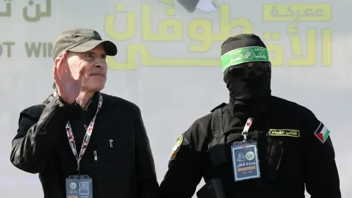 ونشرت كتائب القسام مشاهد لتسليم الدفعة الرابعة من أسرى الاحتلال الصهيوني في قطاع غزة، ضمن المرحلة الأولى من صفقة “طوفان الأقصى” لتبادل الأسرى. وتضمنت المشاهد رسالة شكر باللغة العبرية من الأسير “الإسرائيلي الامريكي” سيغال لكتائب القسام، والعناصر التي قامت بحمايته طيلة فترة أسره. وسلمت كتائب القسام الأسير سيغال في ميناء غزة، إلى طواقم منظمة الصليب الأحمر الدولية، وسط حشود كبيرة من عناصر الكتائب، إلى جانب احتشاد الفلسطينيين أثناء عملية التسليم.