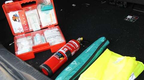 تحتوي علبة الإسعافات الأولية، على بعض الأدوات الضرورية التي يتم اقتناؤها من الصيدلية، والمتمثلة في محلول التعقيم، القطن، الضمادات، المقص وخيط إيقاف النزيف، ومؤخرا أضيفت للقائمة أقراص ألم الرأس خاصة بالنسبة للسائقين، الذين يقومون برحلات طويلة، ليستعملها السائق أو الركاب.