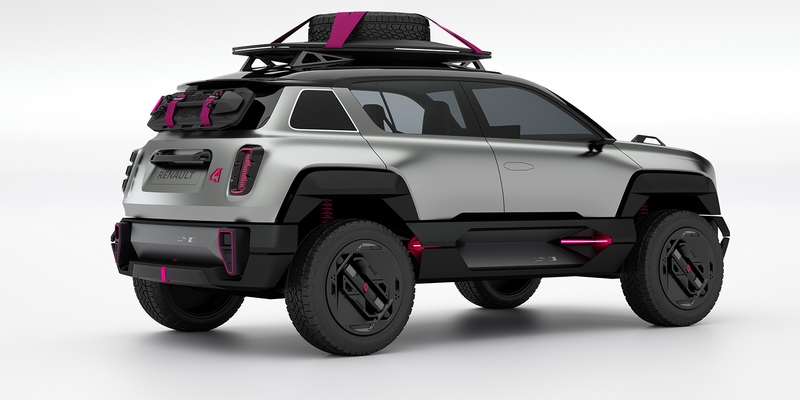 الاسم الكامل للسيارة هو رينو 4EVER Trophy، وتلمح السيارة لـ SUV من فئة B متوسطة الحجم، وتتميز بشخصية فريدة مع مقدمة حادة وتصميم جانبي رياضي. تقدم مصابيح Matrix LED بنمط مربعات ومقابض أبواب منسابة، تأتي عجلات بقياس 19 إنش بتصميم مستقبلي مع ميزة ضبط ضغط الهواء في الإطارات آلياً لقيادة أفضل على الطرق الوعرة.