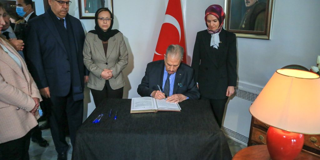 قام رئيس مجلس الأمة، صالح قوجيل، باسم رئيس الجمهورية، السيد عبد المجيد تبون، اليوم الأربعاء، بمقر إقامة سفارة تركيا بالجزائر، بالتوقيع على سجل التعازي إثر الزلزال العنيف الذي ضرب الاثنين الماضي عدة مدن من تركيا.