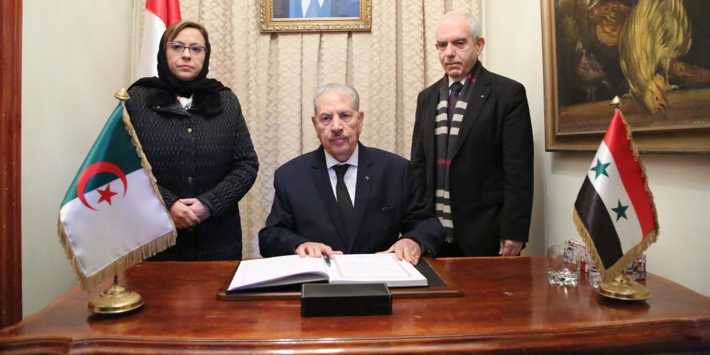 قام رئيس مجلس الأمة, السيد صالح قوجيل, باسم رئيس الجمهورية, السيد عبد المجيد تبون, اليوم الأحد بمقر سفارة سوريا بالجزائر, بالتوقيع على سجل التعازي إثر الزلزال العنيف الذي ضرب شمال هذا البلد.
