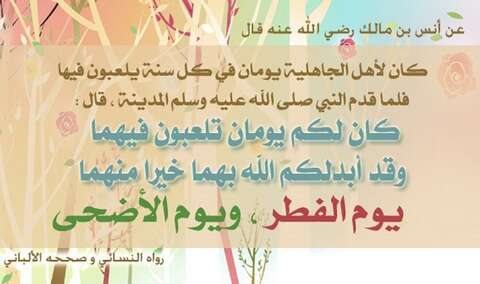 يقول أنس بن مالك: كان لأهل الجاهلية يومان في كل سنة يلعبون فيها، فلما قدم النبي صلى الله عليه وسلم المدينة قال: “كان لكم يومان تلعبون فيهما، وقد أبدلكم الله بهما خيرًا منهما: يوم الفطر، ويوم الأضحى” رواه النسائي. فهذا الحديث يكشف أن الإسلام يقتصر على عيدين فقط، ولا يُقِرُّ وجود أي عيد سواهما؛ بل نهى عن ذلك، وحذَّر من إحداث أي عيد في الإسلام، وبيَّن أنه إتباع لليهود والنصارى، وقد جاء الإسلام ليُحذِّر من إتباعهم، وأن إتباعهم يجرُّ إلى الضلال، والمسلم يعلن مرارًا شعاره كل يوم، وهو قوله تعالى: ” اهْدِنَا الصِّرَاطَ الْمُسْتَقِيمَ صِرَاطَ الَّذِينَ أَنْعَمْتَ عَلَيْهِمْ غَيْرِ الْمَغْضُوبِ عَلَيْهِمْ وَلَا الضَّالِّينَ ” الفاتحة: 6، 7.