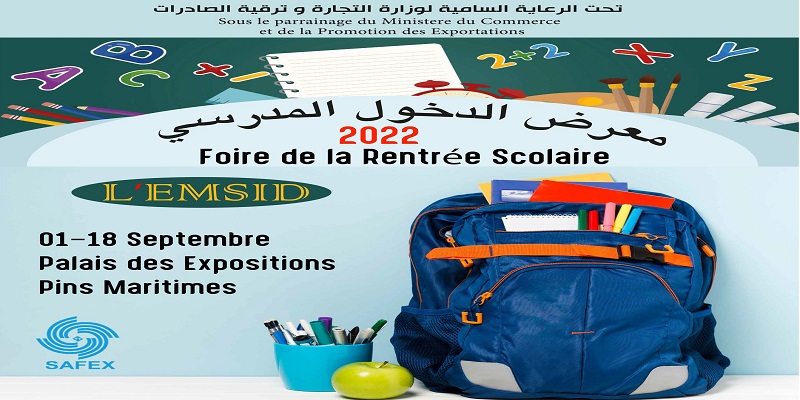 وقالت المكلفة بالإعلام لدى “صافكس”، حفيظة مقداد، أن معرض الدخول المدرسي تحت تسمية “لمسيد” هو الأول من نوعه ستنظمه “صافكس” برعاية وزارة التجارة وترقية الصادرات، في الفترة الممتدة من 1 إلى 18 سبتمبر المقبل، بشعار “من أجل سنة دراسية موفقة للجميع”.