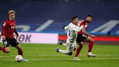 واحتسب حكم المباراة ركلة جزاء في الشوط الأول، بعدما سقط البرازيلي كاسيميرو في منطقة جزاء الخفافيش عقب احتكاك مع الدفاع، في لقطة أثارت اعتراضات لاعبي فالنسيا.