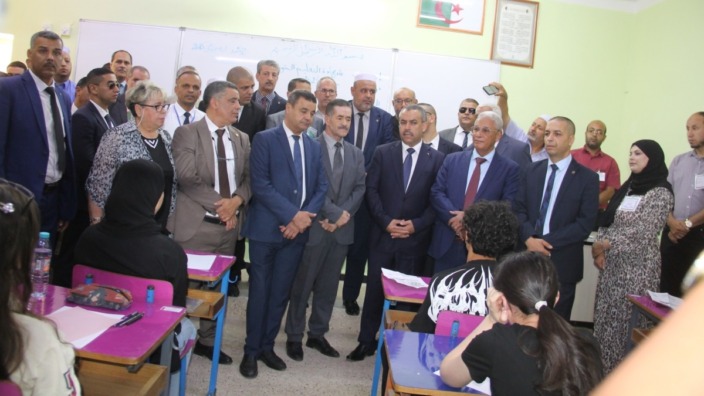 انطلقت، الأحد، رسميا امتحانات شهادة التعليم المتوسط لدورة جوان 2025، وسط ارتياح كبير من وزير التربية الوطنية، محمد صغير سعدوي، بخصوص الجهود المبذولة لمكافحة الغش، مسجلا تراجع حالات الغش, وهو مؤشر إيجابي على فعالية الإجراءات المتخذة, وهو ما يمكن التلاميذ من اجتياز الامتحانات بكل سلاسة وأريحية”. وأعطى وزير التربية الوطنية, محمد الصغير سعداوي, صباح السبت، من ولاية غرداية, إشارة الانطلاق الرسمي لامتحانات شهادة التعليم المتوسط (دورة جوان 2025)، حيث أشرف سعداوي رفقة والي الولاية, عبد الله أبي نوار, بمركز الإجراء بمتوسطة محمد بوضياف بعاصمة الولاية, على فتح أظرفة الامتحانات لمادة اللغة العربية، كما جرت مراسم انطلاق هذه الامتحانات بحضور الشركاء الاجتماعيين لقطاع التربية الوطنية. وقام الوزير بتفقد قاعات الامتحانات بالمركز, بما في ذلك القاعات الثلاث المخصصة للمترشحين من ذوي الاحتياجات الخاصة, مؤكدا في هذا الصدد أن الدولة سخرت الإمكانيات الضرورية لتمكين كافة المترشحين من اجتياز هذه الامتحانات في ظروف جيدة. وتقدم لاجتياز شهادة التعليم المتوسط (1-3 جوان) على المستوى الوطني 826970 مترشحا ما بين متمدرسين وأحرار موزعين على 3070 مركز إجراء، منهم وحسب الأرقام التي قدمها الوزير في ندوة صحفية، 814 ألف و523 مترشحا من فئة المتمدرسين و12 ألف و447 من فئة الأحرار موزعين على 3070 مركز، حيث تم تسخير 208 ألف و240 أستاذ حارس، مع تسخير 3070 رئيس مركز، فيما بلغ عدد المؤطرين في الأمانة العامة 18420 أستاذ و3850 ملاحظ. وفي ندوة صحفية عقب إعطائه إشارة انطلاق الامتحان أوضح سعداوي, أنه “تم صبيحة الأحد إعطاء إشارة الانطلاق الرسمي لهذا الامتحان النهائي الهام عبر ربوع الوطن, حيث تم تسخير كل الإمكانيات اللازمة ليمتحن التلاميذ في ظروف بيداغوجية تمكن من التنافس الإيجابي الذي يندرج ضمن آليات التقويم, بعد 4 سنوات من مرحلة التعليم المتوسط”. وأكد سعداوي، أنه تم توفير جميع الظروف لاجتياز امتحان شهادة التعليم المتوسط. كما تم توفير كل الظروف من أجل تأمين أوراق الامتحانات وحتى الخاصة بشهادة البكالوريا، مشيرة أنه تم توفير الظروف الملائمة للتلاميذ المرضى بالمؤسسات الاستشفائية، بالإضافة كذلك إلى التلاميذ العائدين من المهجر من خلال تخصيص مواضيع مكيّفة حسب حالة كل تلميذ. إخضاع امتحان تقييم المكتسبات “للتقييم” واستشارة الأسرة التربوية بخصوصه. وفي السياق ذاته، توقف الوزير عند التحضيرات والتدابير المتخذة لصالح المترشحين من ذوي الاحتياجات الخاصة، لتمكينهم من إجراء هذا الامتحان في ظروف مناسبة، مشيرا جميع الظروف تم توفيرها من مرافقين ومختصين. وعن الامتحانات النهائية، أكد الوزير، أنه تم توفير كل الظروف الملائمة لتأمين الامتحانات بطريقة تضمن العدالة والسير الطبيعي للامتحان، من خلال حماية التلاميذ من التأثيرات الخارجية التي تؤثر على ظروف سير الامتحان، منع الوسائل التكنولوجية الحديثة ومنع دعم المترشحين، ودعا سعداوي المترشحين لضرورة التركيز على المراجعة وعلى ما تلقوه من معلومات على مستوى مؤسساتهم التربوية, سيما أن الامتحان سيكون في مستوى التلاميذ, يضيف الوزير. وكشف وزير التربية في سياق ذي صلة، أن هناك عقوبات صارمة ضد كل من يحاول الغش خلال الامتحانات، مؤكدا تسجيل تراجع في حالات الغش خلال الامتحانات وهذا مؤشر إيجابي. وعن امتحان تقييم المكتسبات, أكد وزير التربية، أنه ما يزال حديثا وتم توسيعه إلى طورين آخرين، كما أنه سيخضع للتقييم وسيتم استشارة الأسرة التربوية بالاعتماد على آليات أفضل سنعتمدها لضمان جودة التعليم. وأجمع، السبت، التلاميذ الذين تقدموا على أولى امتحانات شهادة التعليم المتوسط “البيام” على سهولة مواضيع مادة اللغة العربية، حيث كانت الأسئلة المطروحة في متناول التلميذ المتوسط، رغم صعوبتها قليلا لدى فئة من التلاميذ. ونفس الارتياح عرفته أسئلة مادة العلوم الفيزيائة, حيث سجل إجماع المترشحين أنها كانت مقبولة رغم 