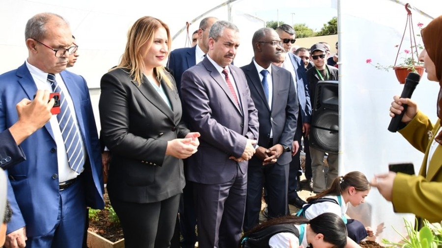 وقد أشرف وزير التربية الوطنية، بمعية وزيرة البيئة وجودة الحياة، نجيبة جيلالي، على إعطاء إشارة الانطلاق لحملة تجهيز 2500 ناديا بيئيا منصّبا بالمؤسسات التعليمية، وهذا بمناسبة التوقيع على بروتوكول تعاون ثنائي بين وزارة التربية الوطنية ووزارة البيئة وجودة الحياة، مع العلم أن نفس عملية التجهيز تمت في نفس اليوم وفي نفس التوقيت، على مستوى خمس مؤسسات تعليمية بخمس ولايات هي: أدرار، الجزائر العاصمة، معسكر، خنشلة والمنيعة. وكانت الفرصة مواتية ليشير من خلالها الوزير للأساتذة، الى حرص الوزارة على ترقية الحياة المهنية للأستاذ، ولجميع مكونات الأسرة التربوية، ليقوم بعدها الوفد الوزاري بزيارة معرض للأعمال الفنية والورشات البيداغوجية الخاصة بالنوادي البيئية (3 نوادي بيئية) بالمتوسطة، واستمع لشروحات مفصلة حولها من طرف التلاميذ المنخرطين في تلك النوادي البيئية، ليقوم بعدها السادة الوزراء بإعطاء إشارة الانطلاق الوطنية لتسليم تجهيزات لـ2500 نادي بيئي، تتكون من بيت بلاستيكي مدعم بنظام استرجاع مياه الأمطار؛ أدوات البستنة؛ صندوق تحضير السماد العضوي؛ حاويات خاصة بعملية الفرز الانتقائي للنفايات (نفايات بلاستيكية نفايات معدنية وكذا ورق وكرتون).