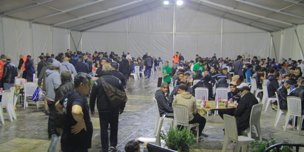 اختارت جمعية “أمل الجزائر Hope DZ”، نصب خيمتها التطوعية التي تتربع على مساحة 1500 متر مربع وبطاقة استيعاب ما بين 1300- 1400 شخص، لاستقبال أكبر عدد ممكن من الصائمين، فقبيل آذان المغرب بدقائق تجمع بين جنباتها عائلات، عابري سبيل، عمال، وكل من حالت مشاغلهم دون الالتحاق بمنازلهم للإفطار.