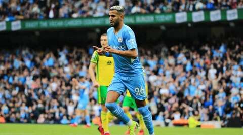واستقبل محرز كرة نموذجية داخل منطقة جزاء نوريتش سيتي ليودعها قائد “محاربي الصحراء” في الشباك بسهولة، مسجلا الهدف الخامس للسيتي، ومعلنا عن أول أهدافه الرسمية هذا الموسم مع الفريق الإنجليزي حامل لقب البريميرليغ الموسم الماضي، وينشد النجم الجزائري أن يقدم مستوياته المعهودة هذا الموسم مع السيتي، للتأكيد على أهميته مع الفريق الإنجليزي الطامح للوصول بعيدا في البطولة، وكذلك السعي صوب لقب دوري أبطال أوروبا هذا الموسم، من خلال حجز مكان أساسي في التشكيلة بشكل مستمر.