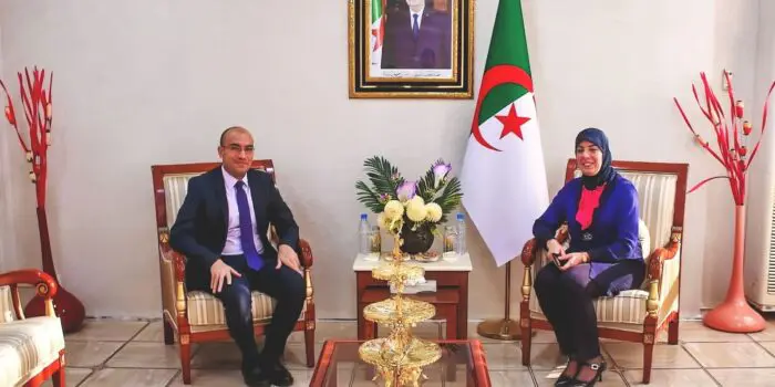 التقى، كاتب الدولة لدى وزير الشؤون الخارجية، المكلف بالجالية الوطنية بالخارج، سفيان شايب، مع الوزيرة، المحافظة السامية للرقمنة، مريم بن مولود، رفقة أعضاء من الوزارة المعنية.