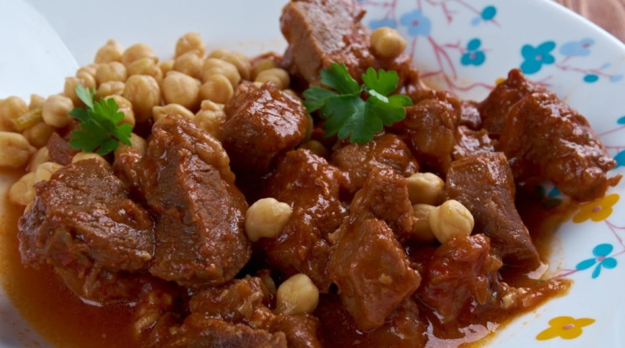 في طنجرة على نار متوسطة نضع الزيت و السمن نضيف اللحم و نصف التتبيلة المتبقية نقلي جيدا ثم نضيف الطماطم ومعجون الطماطم والحميصة نتركها تتقلى قيلا ثم نمرق بالماء الساخن ونغطي الطنجرة ونهدئ النار ونتركها تطهى و تتجمر تزين عند التقديم بالكزبرة الطازجة
