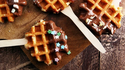 نفتح المول وندهنه بواسطة فرشاة بالزيت ثم نضع الكرات ونغلق المول ونضغط جيدا ونقلب المول لتطهى من الجهة الأخرى حتى تأخذ اللون الذهبي الجميل، بعد الطهي عندما تبرد تماما نغطس جانب من جوانبها بالشوكولا المذابة او ممكن ملأ الفراغات المتشكلة بسبب شكل آلة أو مول الغوفر بالمربى.