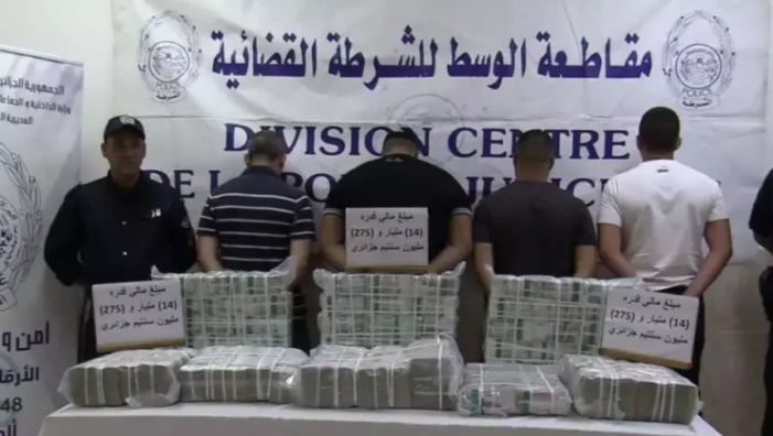 وأضاف البيان أن “العملية التي تمت تحت إشراف النيابة المختصة إقليميا، جاءت إثر إستغلال معلومات بخصوص نشاط شبكة إجرامية مختصة في تبييض الأموال و الغش الضريبي ، التحريات التي قامت باه المصلحة المعنية مكنت من تحديد هوية أفراد الشبكة وتوقيفهم تباعا مع ضبط (14) مليار و (275) مليون سنتيم جزائري (02) مركبتين كانتا تستعملان في نقل هذه الأموال”.