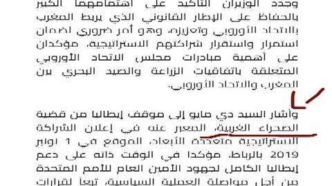 ففي بيان مشترك نشر ،الاربعاء عقب محادثة هاتفية بين وزير الشؤون الخارجية المغربي, ناصر بوريطة ونظيره الايطالي لويجي دي مايو, اضحى الأمر يتعلق الأن _بالصحراء الغربية_ وليس _الصحراء المغربية_.