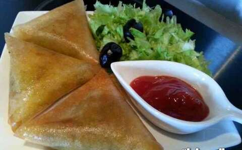 نمسك ورقة ديول ونضع قليلا من الجبن ثم الحشو ونلفها على شكل مثلثات ثم نقليها في زيت ساخن.