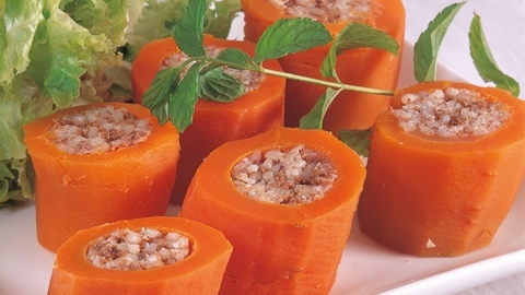 يقشر الجزر ويفرغ داخله بواسطة المنقرة، مع الانتباه إلى عدم تفتته.