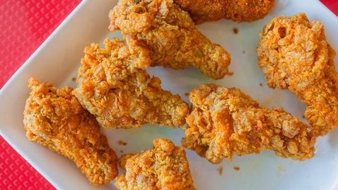 5- صفّي الدجاج من الزيت وضعيه على طبق. قدّميه ساخناً.