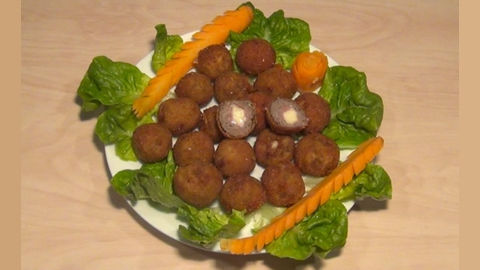 نغمس الكرات بالطحين ثم البيض ثم بالبقسماط.