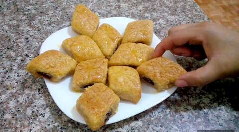 ونضعهم في الفرن على نار جد متوسطة حتى ينضج جيدا فور اخراجه من الفرن نضعه في عسل بارد موضوع فيه عطر اللوز لوقت طويل حتى يتشرب جيدا.