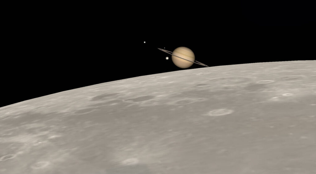 “يمكن رؤية هذا المشهد بالعين المجردة أو أفضل من ذلك، باستخدام تلسكوب صغير لرصد انغماس وانبعات الكوكب وحلقاته.