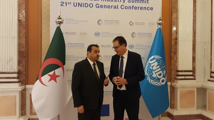 تحادث وزير الدولة، وزير المحروقات والمناجم محمد عرقاب الإثنين مع المدير العام لمنظمة الأمم المتحدة للتنمية الصناعية غيرد مولر على هامش انعقاد المؤتمر العام الحادي والعشرين لمنظمة الأمم المتحدة للتنمية الصناعية المنعقد بالعاصمة السعودية الرياض من 23 إلى 27 نوفمبر 2025 حسب ما أفاد به بيان للوزارة.