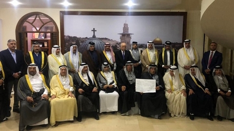 ووقع شيوخ من عشرين عشيرة عراقية الوثيقة خلال زيارتهم مقر سفارة دولة فلسطين لدى العراق ولقاء السفير أحمد عقل، أكدوا من خلالها أن عشائر العراق “ستبقى على عهد فلسطين وتحافظ على حقها وحقيقتها وتعمل على تحريرها وخلاصها من الاحتلال”.