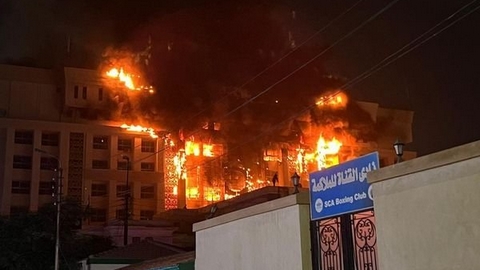 وقال التلفزيون المصري إن قوات الحماية المدنية سيطرت على الحريق الذي التهم المبنى بالكامل.