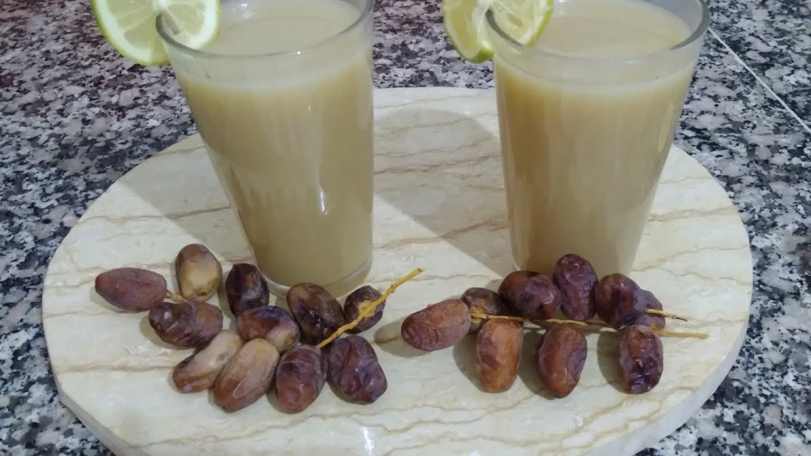نغسل التمر ونزيل له النواة ونمزج كل المكونات ونضعهم بالطحانة الكهربائية، ونطحن الكل جيدا حتى تتجانس جميع العناصر ونضع العصير بالثلاجة لساعات قبل التقديم. يشرب باردا.