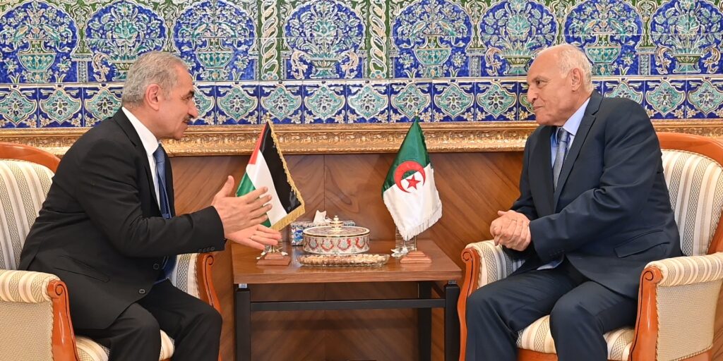 استقبل وزير الشؤون الخارجية والجالية الوطنية بالخارج، السيد أحمد عطاف، الثلاثاء، بمقر الوزارة، رئيس مجلس إدارة مركز الأبحاث الفلسطيني ورئيس الوزراء الأسبق بدولة فلسطين الشقيقة، السيد محمد اشتية، الذي يقوم بزيارة عمل إلى الجزائر، حسب ما جاء في بيان للوزارة.