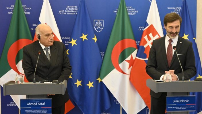 أجرى وزير الدولة, وزير الشؤون الخارجية والجالية الوطنية بالخارج والشؤون الإفريقية, السيد أحمد عطاف, هذا الثلاثاء بعاصمة جمهورية سلوفاكيا, براتيسلافا, محادثات ثنائية مع وزير الشؤون الخارجية والأوروبية السلوفاكي, السيد يواري بلانار, وذلك في إطار الزيارة الرسمية التي يقوم بها بتكليف من رئيس الجمهورية, السيد عبد المجيد تبون, وفق ما أورده بيان للوزارة.