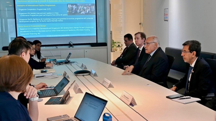 شكّلت الزيارة فرصة للاطلاع على تجربة سنغافورة الرائدة في ميدان الحوكمة الحضرية، واستكشاف فرص التعاون والتبادل الممكنة بين البلدين الصديقين في المجالات ذات الصلة بالتحول الرقمي الحضري وتسيير المدن الذكية والمستدامة.