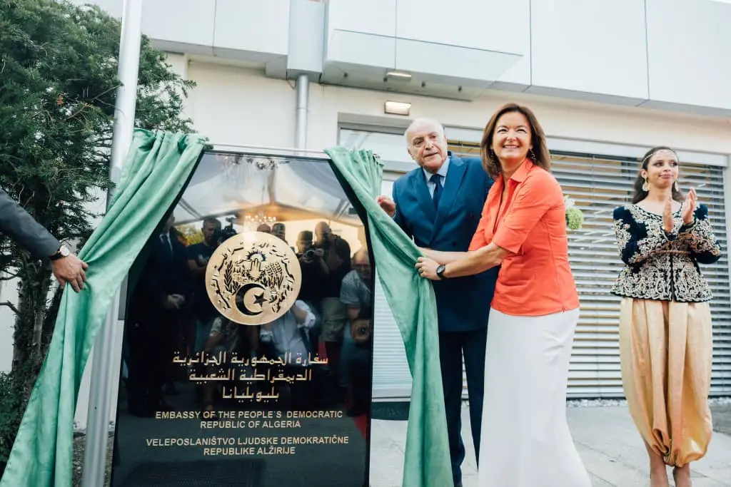 وقد حضر مراسم التدشين عدد من المسؤولين السلوفينيين من بينهم كاتب الدولة المكلف بالبيئة والمناخ والطاقة، وكاتبة الدولة بديوان رئيس الوزراء، والرئيس التنفيذي لشركة Geoplin، بالإضافة إلى ممثلي السلك الدبلوماسي المعتمد بسلوفينيا، وعدد من أعضاء الجالية الوطنية المقيمة بهذا البلد الصديق. ويجدر التنويه، أن افتتاح السفارة الجزائرية بليوبليانا، الذي يأتي في أعقاب قيام جمهورية سلوفينيا بفتح سفارة لها بالجزائر شهر ماي الماضي، يندرج في إطار تجسيد التوجيهات السامية لقيادتي البلدين القاضية برفع التمثيل الدبلوماسي الثنائي إلى مستوى سفيرين مُقيمين بُغية مرافقة ومُواكبة الحركية المُتزايدة التي تشهدها العلاقات الثنائية على مختلف الأصعدة وفي شتى المجالات. وفي اختتام مراسم التدشين، وقع الوزير أحمد عطاف ونظيرته السلوفينية، تانيا فايون، على السجل الذهبي للسفارة، معربين عن تطلعهما لبداية عهد جديد ومتجدد في تاريخ علاقات الصداقة والتعاون والشراكة بين البلدين.