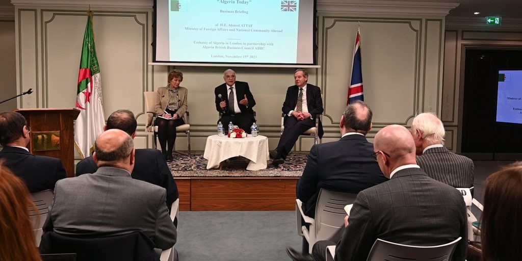 وأوضح البيان أن السيد عطاف قدم عرضا حول مقومات الاستثمار في الجزائر وأهم محاور السياسة الاقتصادية في مجال تحفيز وجذب الاستثمارات الأجنبية و ذلك بحضور اللورد ريتشارد ريسبي, المبعوث الخاص لرئيس الوزراء البريطاني المكلف بتعزيز الشراكة الاقتصادية مع الجزائر.
