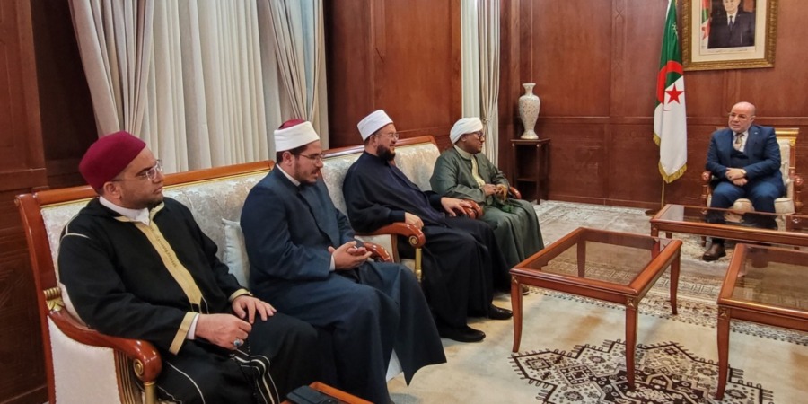 استقبل وزير الشؤون الدينية والأوقاف، السيد يوسف بلمهدي, السبت، بمقر الوزارة بالجزائر العاصمة, وفدا من علماء الدين الاسلامي الحنيف الذين شاركوا في تأطير الملتقى الـ17 لسلسلة الدروس المحمدية المنظم من طرف الزاوية البلقايدية الهبرية بوهران، حيث أشادوا بالدور الريادي للجزائر بقيادة رئيس الجمهورية السيد عبد المجيد تبون في خدمة قضايا العالم الاسلامي ونشر قيم الوسطية والاعتدال في العالم.