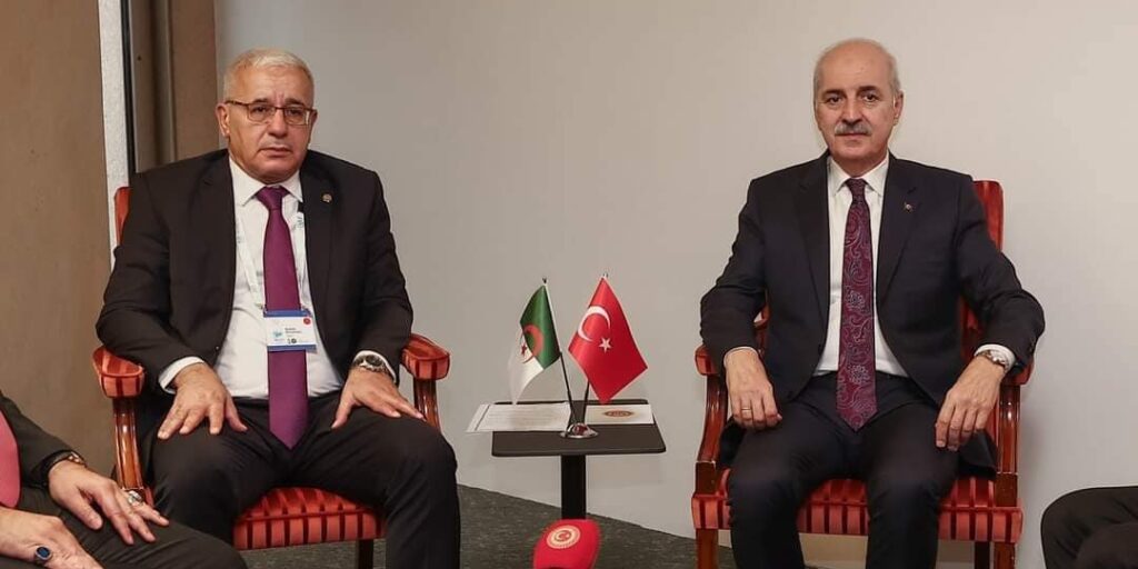 التقى، إبراهيم بوغالي، رئيس المجلس الشعبي الوطني، نظيره التركي، نعمان كرتولموش، رئيس المجلس الوطني الكبير، على هامش أشغال الجمعية الـ149 للاتحاد البرلماني الدولي المنعقد بجنيف في الفترة الممتدة من 13 إلى 17 أكتوبر 2024. وبحسب بيان المجلس الشعبي الوطني، فقد أكد الطرفان، خلال اللقاء، متانة العلاقات الثنائية وتطرقا إلى سبل ترقيتها على جميع المستويات بما يخدم مصلحة شعبي البلدين ولا سيما على المستوى البرلماني، وذلك بالنظر للإرث التاريخي المشترك ومجالات الشراكة والتعاون القائمة بين البلدين في عديد من المجالات الاقتصادية، السياسية والثقافية. كما ثمنا المسؤولان توافق الرؤى حول القضايا ذات الاهتمام المشترك، وأكدا ضرورة تعزيز التنسيق والتشاور حول القضايا الراهنة وعلى رأسها الوضع في فلسطين ولبنان.