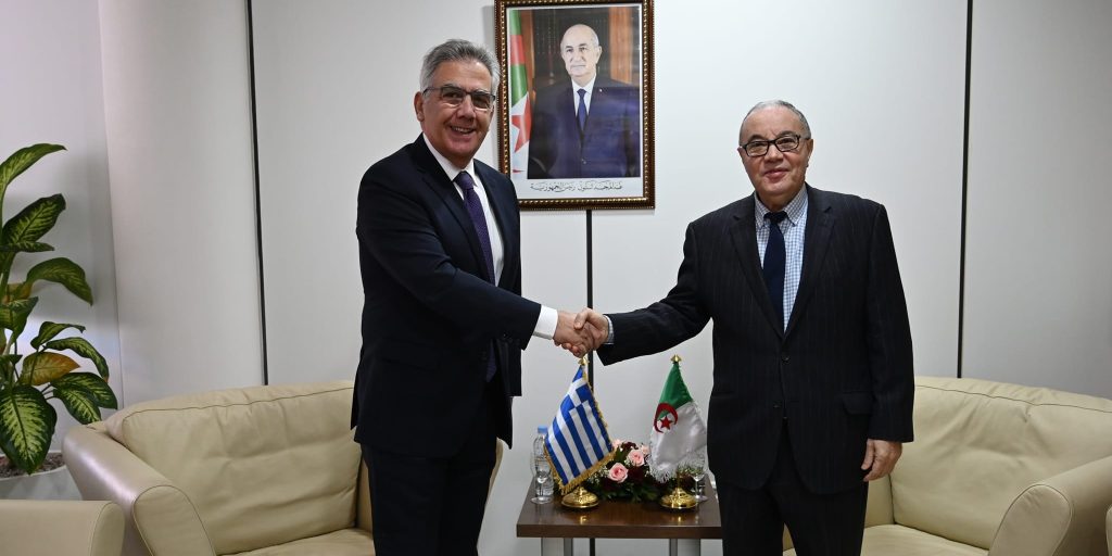 و أوضح البيان أنه خلال اللقاء, بحث الطرفان “العلاقات الثنائية والسبل الكفيلة بتعزيز التعاون القائم بين الجزائر واليونان في كافة المجالات ذات الاهتمام المشترك”.
