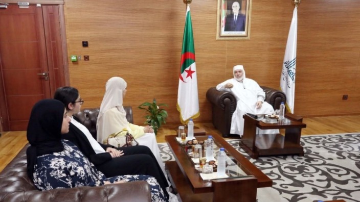 استقبل عميد جامع الجزائر، الشيخ محمّد المأمون القاسمي الحسنيّ، المتفوّقات الثلاث الأُول في امتحان شهادة الباكالوريا لدورة 2025، في لقاء رمزيّ احتضنته مقرّ عمادة جامع الجزائر، بحضور أوليائهن، ومديري التربية لولاياتهن، والمدير العام للديوان الوطني للامتحانات والمسابقات.